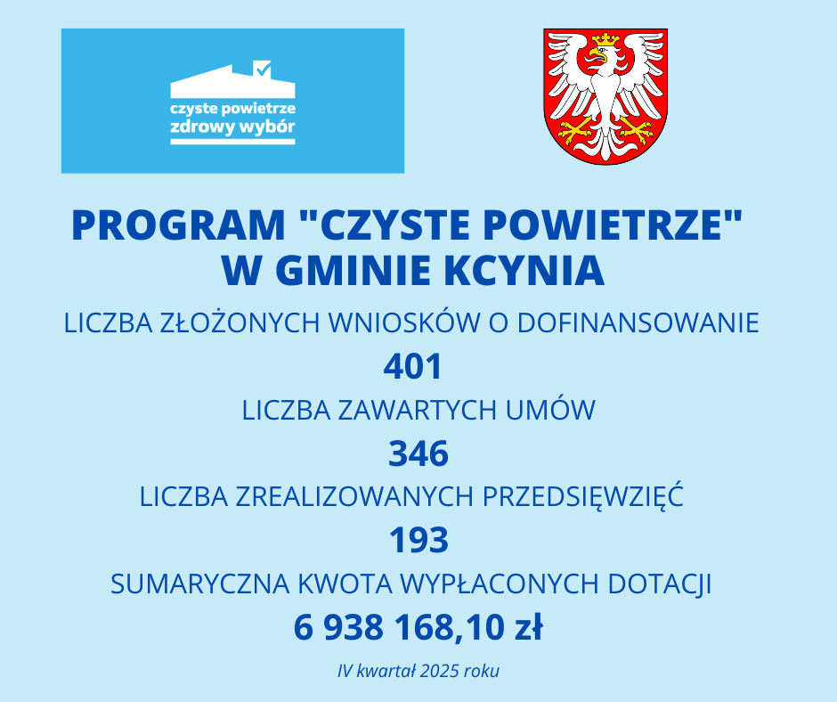 Dane dotyczące dofinansowania w Gminie Kcynia w ramach programu „Czyste powietrze”